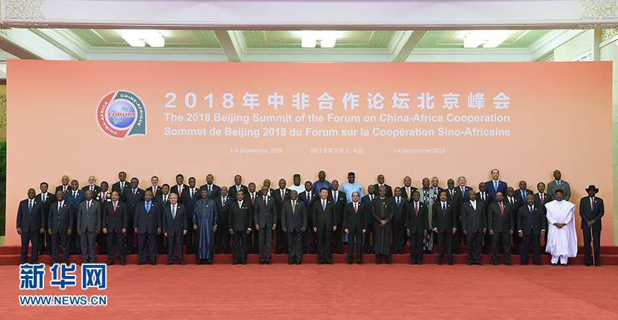 初秋的北京,天安门广场和长安街两旁鲜花盛开,中非合作论坛成员国国旗、非洲联盟会旗和印有中非合作论坛会徽的旗帜迎风飘扬。人民大会堂北门外,礼兵分列红地毯两侧。16时许,出席论坛峰会的外方领导人陆续抵达。习近平在北大厅热情迎接,同他们一一亲切握手,互致问候。随后,中外领导人集体合影。