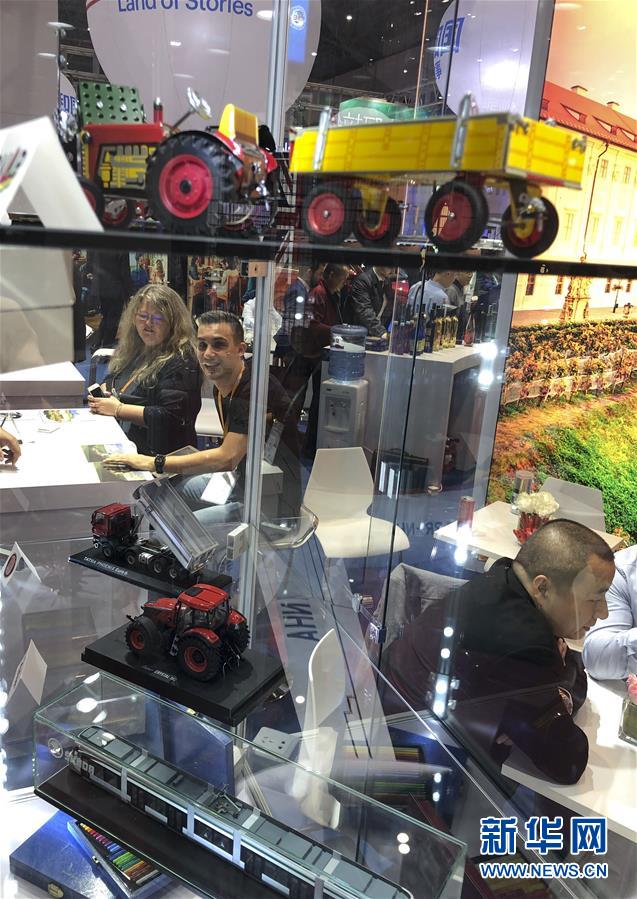 11月6日,参会者在首届中国国际进口博览会捷克展区观看模型。新华社记者殷刚摄
