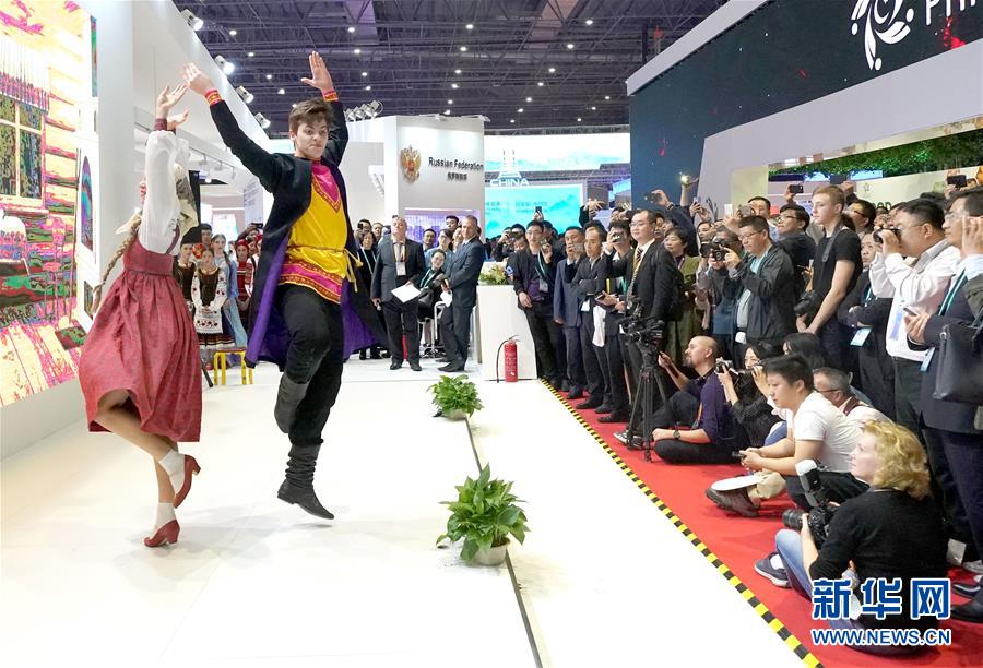 11月6日,俄罗斯演员在首届中国国际进口博览会俄罗斯展区表演舞蹈。新华社记者陈建力摄