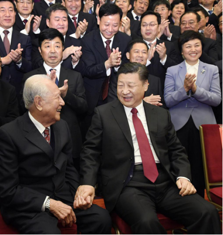 习近平握着黄旭华的手,请他坐到自己身边来。这是发生在2017年11月17日,全国精神文明建设表彰大会上的一个感人场景。