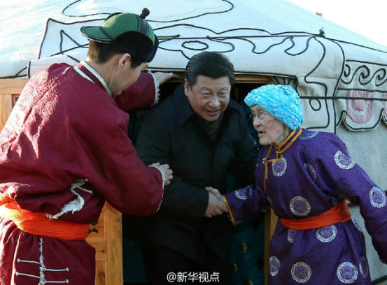2014年1月27日,马年春节到来前,习近平来到内蒙古锡林郭勒盟宝力根苏木牧民、81岁的玛吉格老人家。客厅、厨房、卧室、库房,他一一察看,细心询问生活上有没有困难。当听到老人反映有的牧户在用电、通行上还有些困难时,他当即要求当地党委和政府作出规划,努力加以解决。