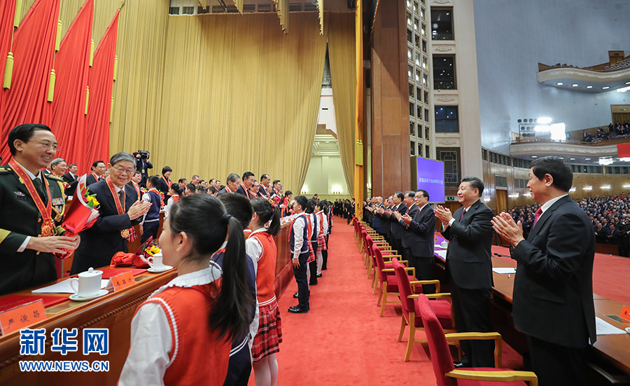 12月18日,庆祝改革开放40周年大会在北京人民大会堂隆重举行。中共中央总书记、国家主席、中央军委主席习近平在大会上发表重要讲话。这是习近平等为获得改革先锋称号人员代表颁奖。 新华社记者 鞠鹏 摄