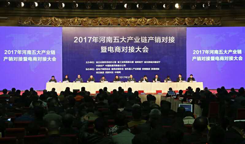 3月21日,2017年度河南五大产业链产销对接暨电商对接大会在郑州会展中心举行。濮阳市组织贝英数控、天水服饰、奇点食品等17家企业参会,分别就智能装备与机器人、冷链食品、智能终端与智能硬件、先进钢铁材料、品牌纺织服装供应链等五大产业链开展专题对接活动。