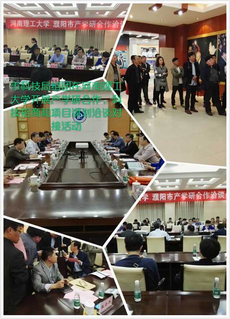 为深入实施创新驱动、开放招商战略,加强产学研合作、科技招商和项目谋划工作,引进项目、引进资金、引进人才,促进濮阳又好又快发展,4月24日,市科技、工信部门组织各县区工信科技部门和12家企业负责人一行26人在河南理工大学开展产学研合作、科技招商和项目谋划洽谈对接活动。河南理工大学副校长周英,科技处、化工学院、机械学院、电气学院、材料学院、计算机学院、测绘学院的负责人及相关领域的专家教授共22人参加了会议。
