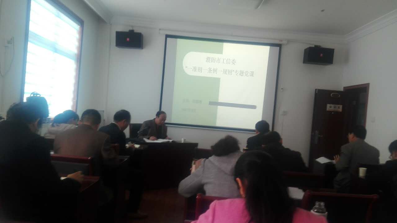 根据市纪委“一准则一条例一规则”集中学习教育活动安排,今天由我给大家作这次专题党党课。学好用好《关于新形势下党内政治生活的若干准则》和《中国共产党党内监督条例》,是让大家进一步明纪懂纪,知纪守纪,筑牢思想防线,促进锤炼党性,学深悟透、提升本领,做一名合格党员。通过参加市纪委集中学习和自己的学习体会,结合咱们市工信委的工作实际,我认为一定要学习原文、领悟其精神内涵,真正学清弄懂要做什么、不要做什么,能做什么、不能做什么,坚守原则,不忘初心,方得始终。我现在从五个方面来为大家解读《关于新形势下党内政治生活的若干准则》。