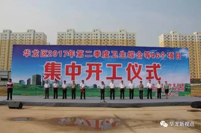 6月19日,华龙区2017年第二季度卫生综合等46个项目集中开工仪式在孟轲乡项目现场举行。市政协副主席刘国相出席开工仪式并宣布开工。区领导高尚功、蔡洪峰、孙福柱、伍凛然、侯富浩、高习智、范玉春、葛慎岗、王瑞刚、王建国、苏本献、左留成、葛岩等四大班子领导出席开工仪式。区委副书记蔡洪峰主持开工仪式。