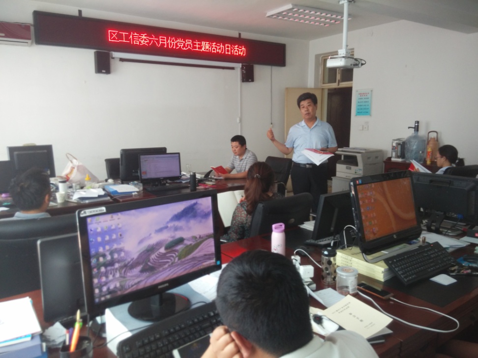 2017年6月30日下午,区工信委在5楼办公室召开支部会议,开展 “主题党日”活动,全体党员参加了会议。