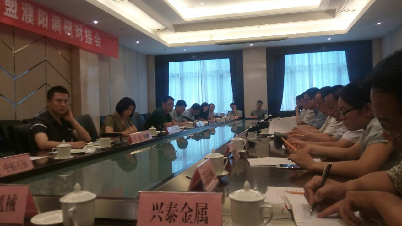 2017年7月4日下午,区工信委副主任李峰带队组织10家优质装备制造企业参加濮阳市工信委与省装备制造企业家联盟联合举办的对接会,市工信委副主任郭德清主持会议,会上16家企业负责人逐一向省联盟汇报了企业情况及需要解决的问题,装备联盟专家分别对企业提出的问题都一一做了解答,并且提出了相关解决方案。