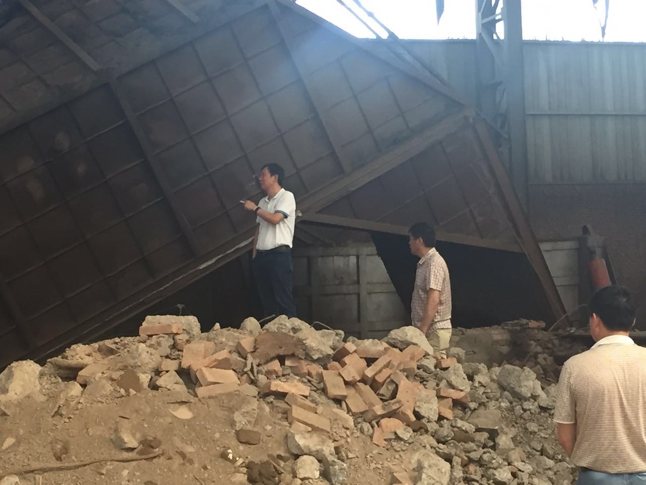 8月24日上午,省工信委原材料工业处副处长陈郑育、市工信委副主任孙向农莅临我县检查地条钢销售企业取缔情况,县领导魏焕显、及工信委主任王宪彪陪同检查。