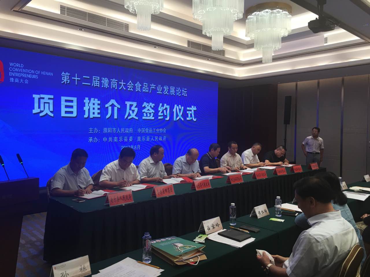 论坛现场,南乐县政府分别与河南省阳光食品有限公司、广州华海食品有限公司、香港星田集团、河南致成包装有限公司、河南广安集团、河南醇品庄园生物科技有限公司、河南泰亿威塑料制品有限公司签约。