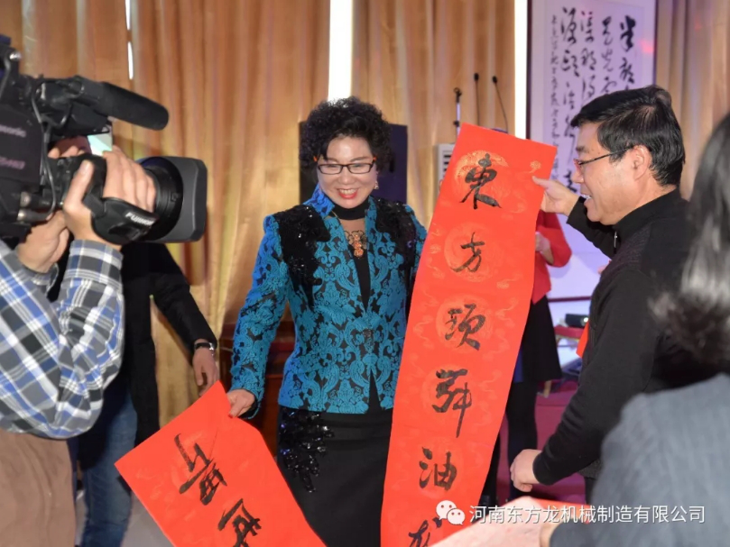 送春联活动也是本次座谈会的一大特色,并将座谈会推向了高潮。区工信委主任、党组书记宋法增同志即兴现场书写春联赠予东方龙机械制造有限公司董事长别新云女士并为其他企业代表纷纷赠送春联。火红的春联承载着区工信委对区属工业企业们满满的祝福,寄托了区工信委对华龙区工业经济在新的一年更上一层楼的美好祝愿。