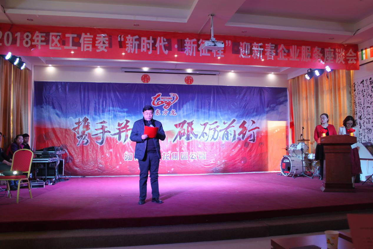 2018年2月5号,农历腊月二十 ,区工信委全体干部职工与区属20余家工业企业在东方龙机械制造有限公司齐聚一堂,在十九大的开局之年,畅谈新时代惠企政策,共谋企业服务新征程,共迎2018年的新春。