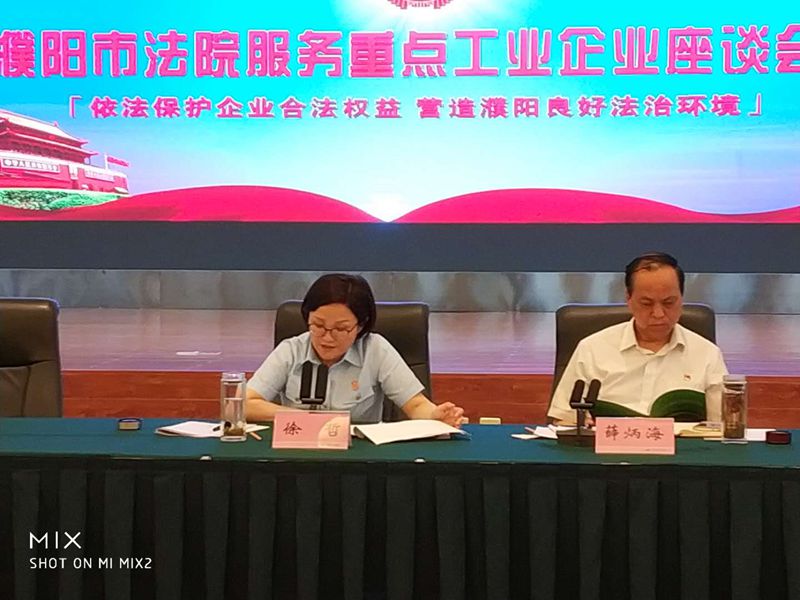 会上,龙丰纸业、天能(河南)集团、蔚林化工等6家企业代表就法院系统如何依法保护企业合法权益、营造良好发展环境提出了意见建议。市法院民二庭庭长、清丰县法院院长等法官代表就如何服务企业发展、打造公平公正的司法环境做了表态发言。同时,印发了《法官联系重点工业企业制度》和《濮阳市法院法官联系重点企业对接表》,把法律服务工作前置,切实维护企业及企业家的合法权益,为我市工业转型发展创造良好的法治环境。薛炳海在介绍了濮阳市工业发展历程和现状后,表示市工信委作为企业服务工作的牵头单位,将会全力支持配合“法官服务进企业”活动,做好法院与工业企业之间的沟通和联络,当好企业服务的联络员,当好企业的服务员。
