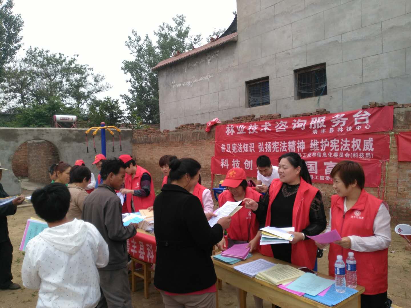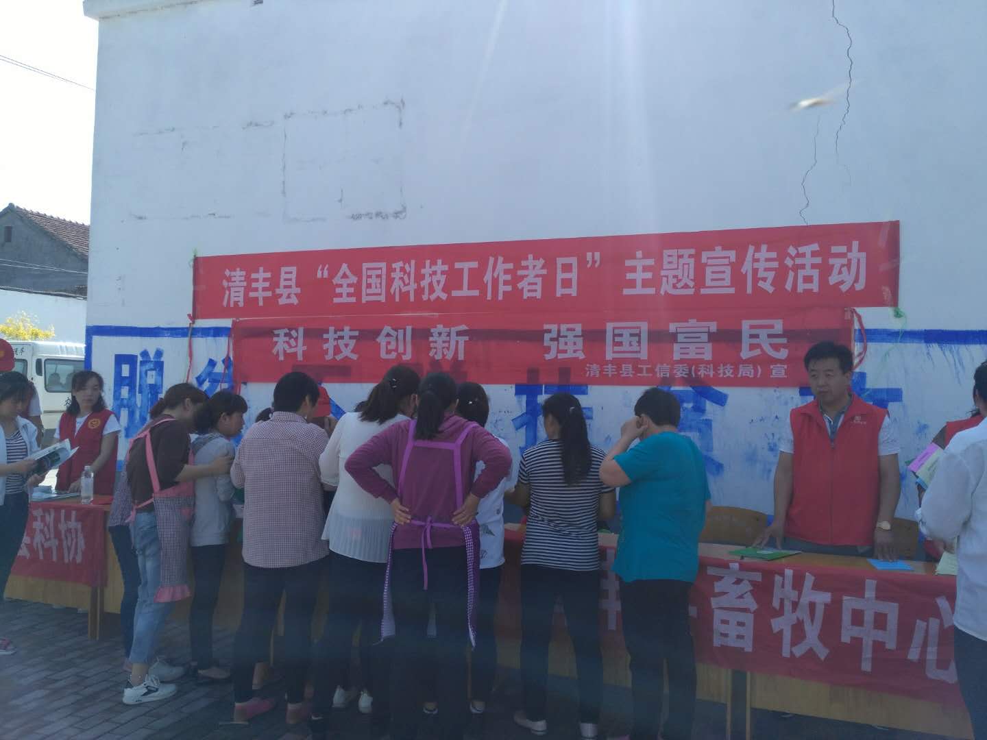 举办科技下乡。活动周期间,由县工信委牵头,科协、农技中心、林技中心、畜牧中心、蔬菜中心等单位的配合下,深入王庄村、郭村等乡村集市举办了宣传咨询活动。在活动现场发放食用菌技术管理、科技致富、疾病预防等刊物资料8000份,摆放“科技知识、减震防灾、疾病防治”等展板18块。现场解答群众生产问题40多项,中医院为群众义诊100余人。