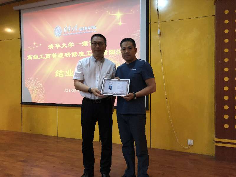 结业典礼上,市工信委主任薛炳海为4名优秀学员颁发了荣誉证书,清华大学继续管理学院院长助理张牧寒为40名企业家学员颁发了结业证书。