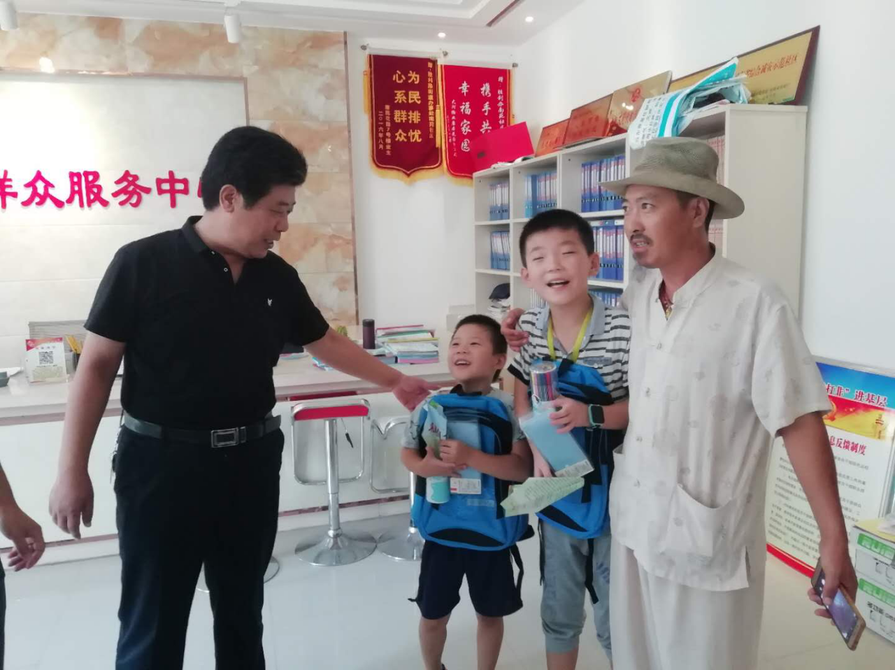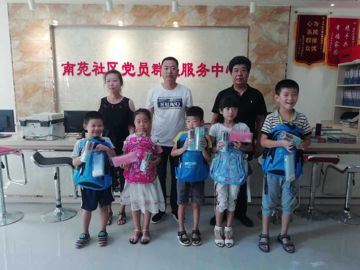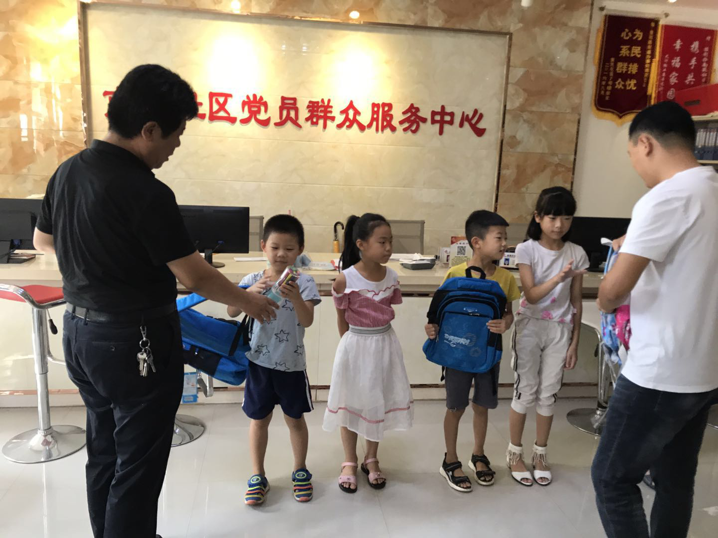 在活动现场,区工信委党支部书记刘何民询问孩子们在生活中遇到的困难,并把书包、彩笔、文具袋送到5名贫困儿童的“心中”。用我委的关心和真诚,让爱心流动,让温情传递,让贫困儿童感受到爱,实现他们的期待的小心愿。