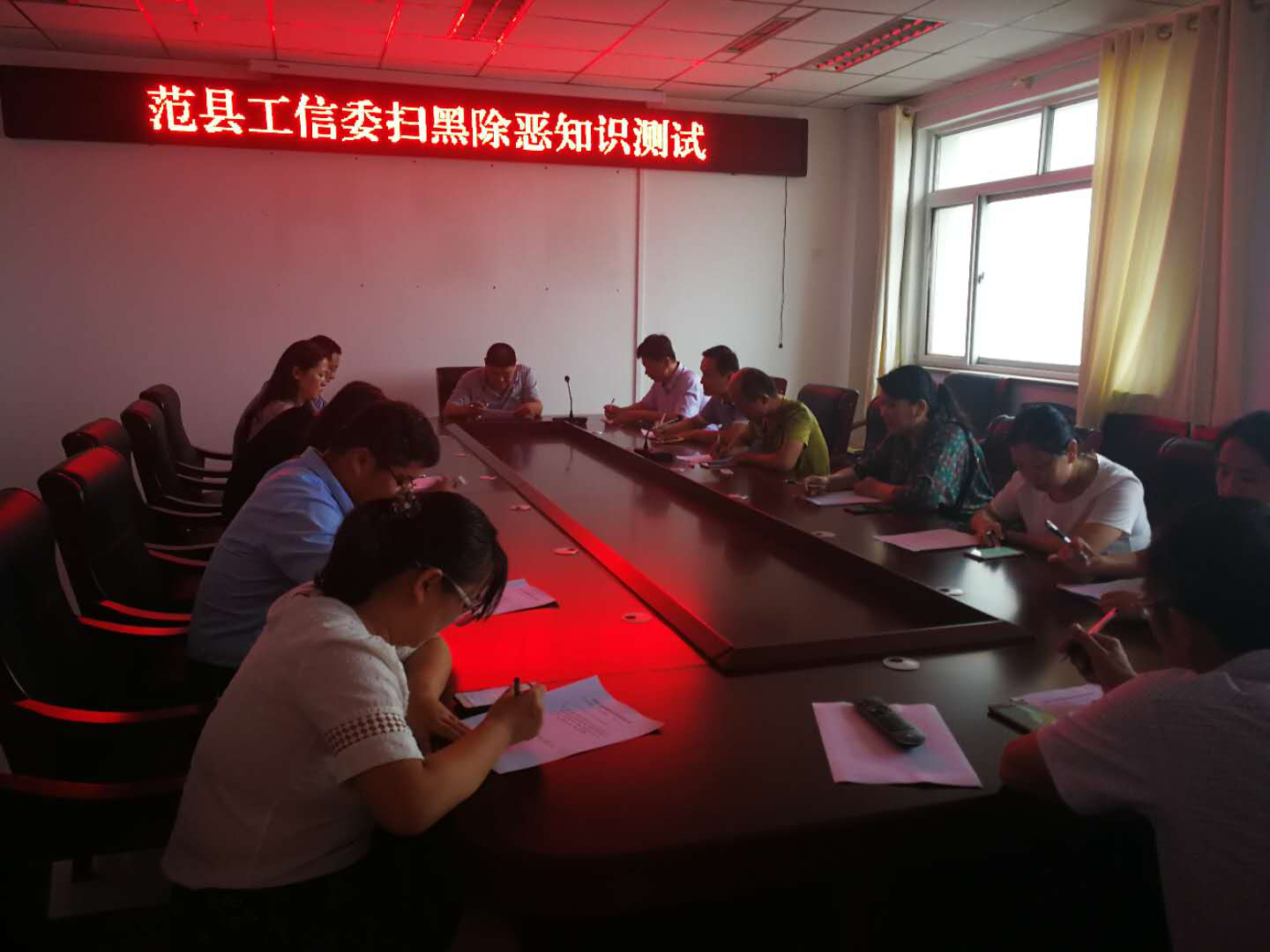 8月22日上午,范县工信委为检验干部职工对扫黑除恶知识及政策的了解程度,推动机关扫黑除恶活动深入开展,保持扫黑除恶专项斗争的强大声势,组织干部职工进行扫黑除恶知识测试。