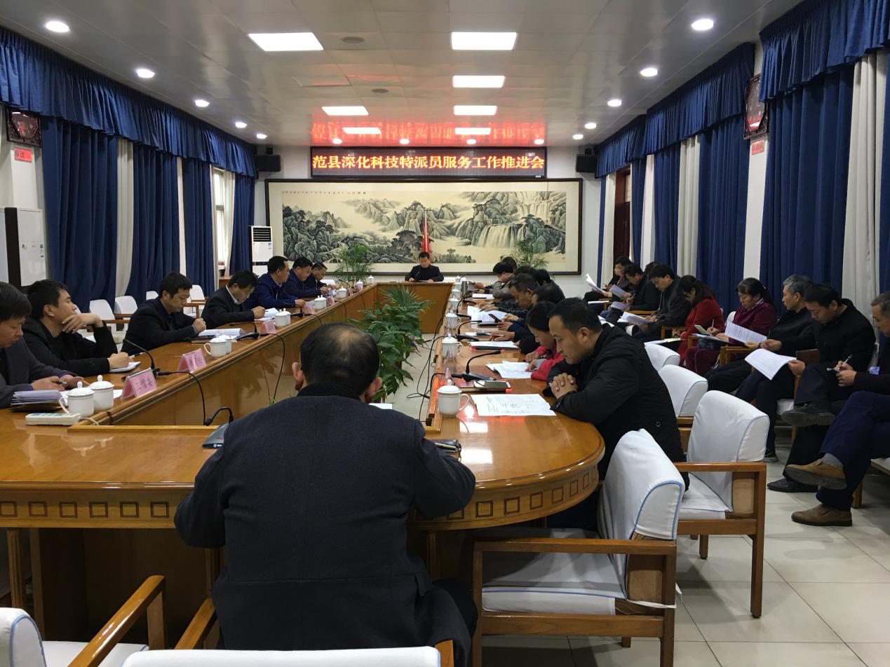 2018年 11月7日,范县深化科技特派员服务工作推进会在县长会议室召开。范县科技特派员助力脱贫攻坚“十百千”工程工作领导小组成员单位分管领导、21名市县科技特派员、13个乡镇办分管副职等参加会议。