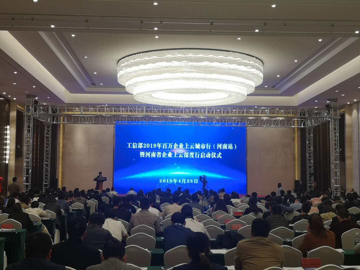 4月25日,工信部2019年百万企业上云城市行(河南站)暨河南省企业上云深度行启动仪式在商丘市举行。工信部信软司副司长王建伟、省工信厅副厅长朱鸣出席活动并致辞。各地市工业和信息化主管部门、企业上云服务提供商、意向上云企业等共350余人参加活动。