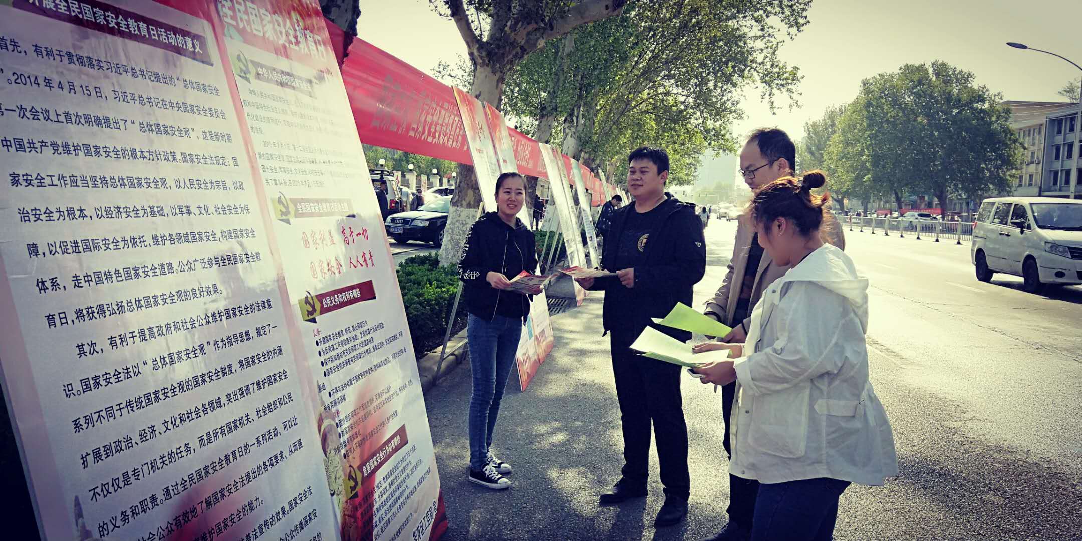 摆放国家安全宣传展板并热心讲解