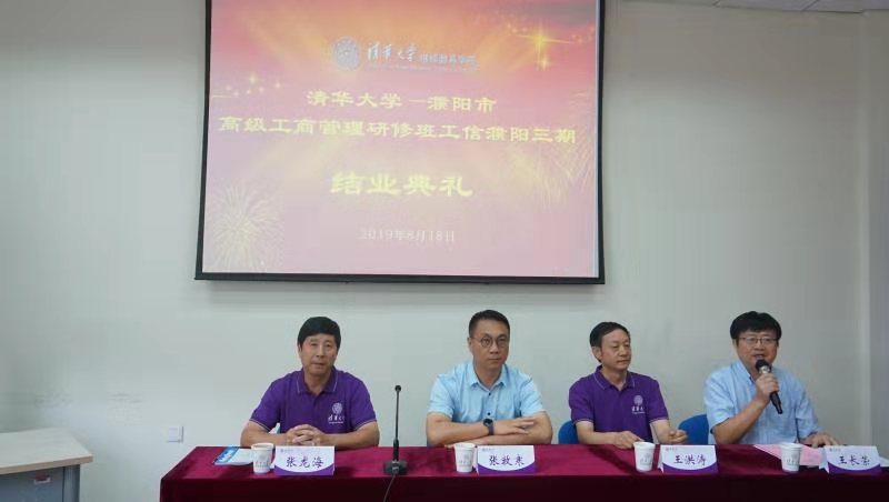 结业典礼由清华大学继续教育学院公开招生项目中心主任王长荣主持,市工信局副局长张龙海、清华大学继续教育学院院长助理张牧寒分别讲话。对研修班圆满结业表示祝贺,对企业家们提出殷切希望,要求企业家们要继续加强学习,做到学思用贯通,知信行统一;要认清形势,抢抓机遇,加快企业转型升级;要弘扬企业家精神,勇于创新,敢于担当,承担社会责任,为推进濮阳市经济高质量发展作出更大贡献。现场为4名优秀学员颁发了荣誉证书,为42名企业家学员颁发了结业证书。