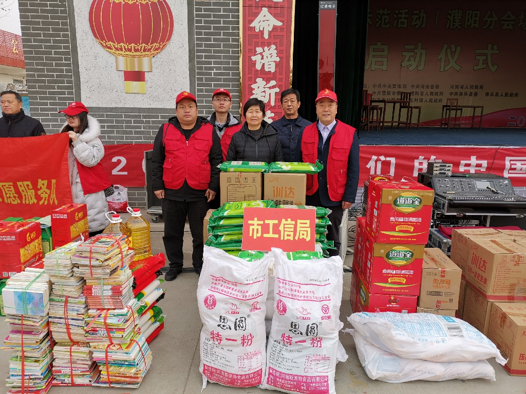 12月20日,2020年全国文化科技卫生“三下乡”集中示范活动(濮阳分会场)启动仪式在南乐县元村镇蔡庄村举行,派驻市工信局纪检组长杜春玲率领志愿者一行5人参加。