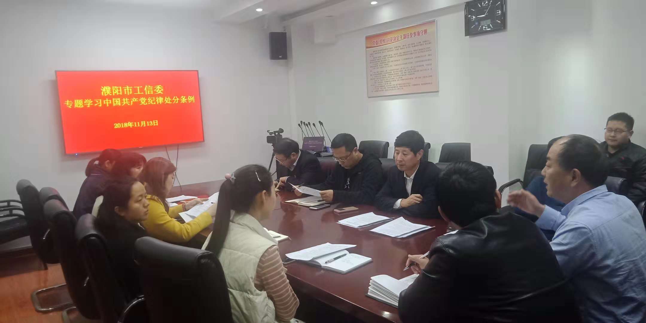 11月13日上午,市工信委在委四楼会议室集中学习《中国共产党纪律处分条例》,全体党员干部参加了学习。