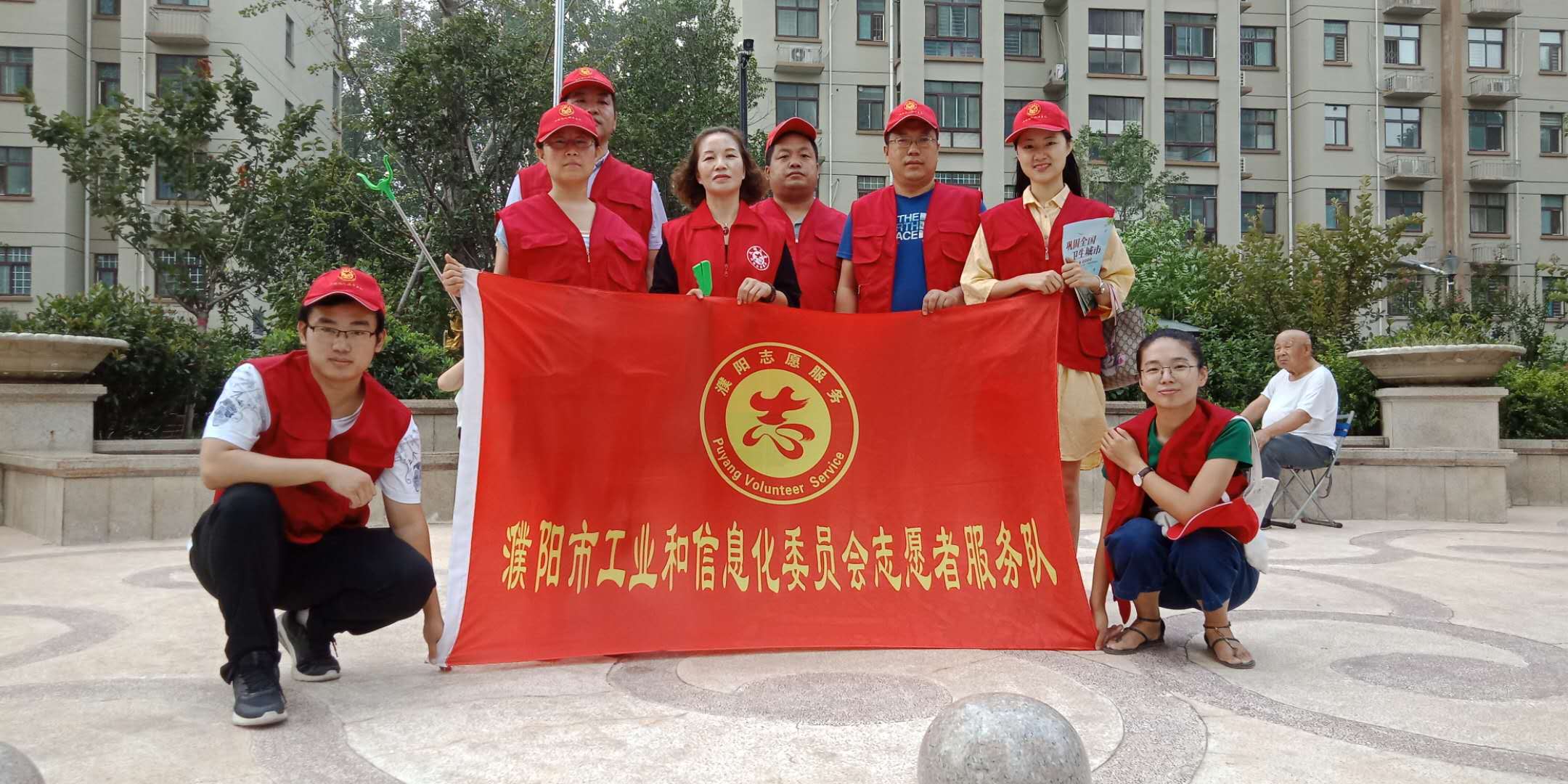 7月28日,为了迎检全国卫生城市复查验收,市工信委志愿者深入金龙湾社区开展清洁家园活动。