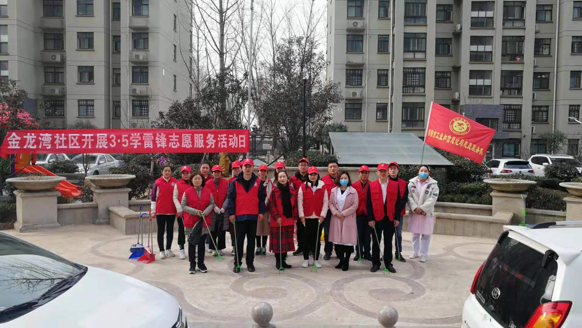 春回大地,万物勃发。3月5日上午,在第56 个“全国学雷锋纪念日”之际,市工信局党员志愿服务队分为两组,在金龙湾社区和龙都广场,开展清洁家园行动和宣传《志愿服务条例》活动。