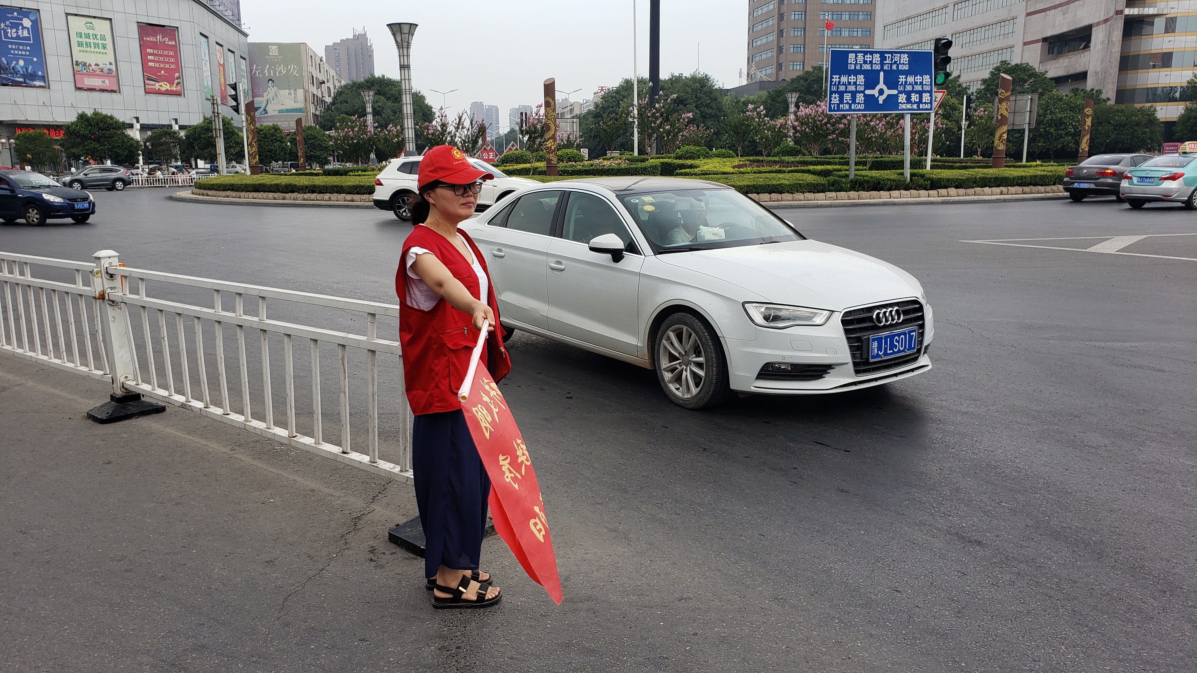 7月22日上午,市工信局志愿者到黄河路与开州路交叉口开展文明交通执勤活动,志愿者们头戴红帽、身穿马甲、手持红旗,对各种车辆乱闯红灯、逆向行驶、随意调头,对行人闯红灯、乱穿马路等不文明行为进行劝导。