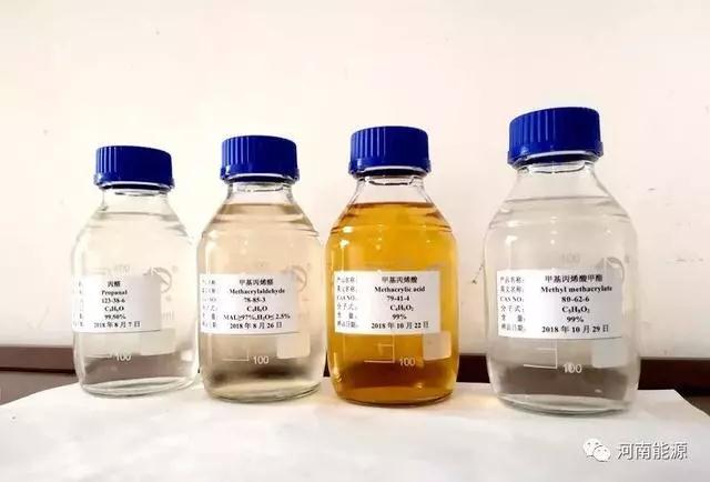 经过几年的探索,双方采用煤化工下游产品乙烯、合成气、甲醛、甲醇为原料,经四步反应生成MMA。2018年,河南能源化工集团下属中原大化公司建成首套千吨级工业试验装置并成功实现了稳定运行,产品性能优异,解决了高温高压、设备及运行成本高等难题,验证了技术的可靠性和先进性。