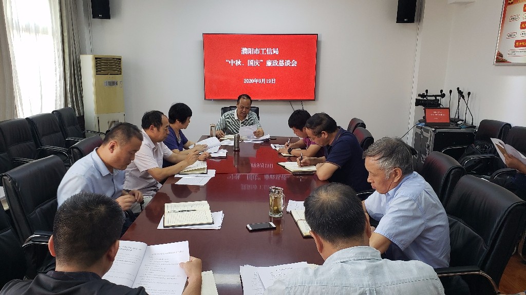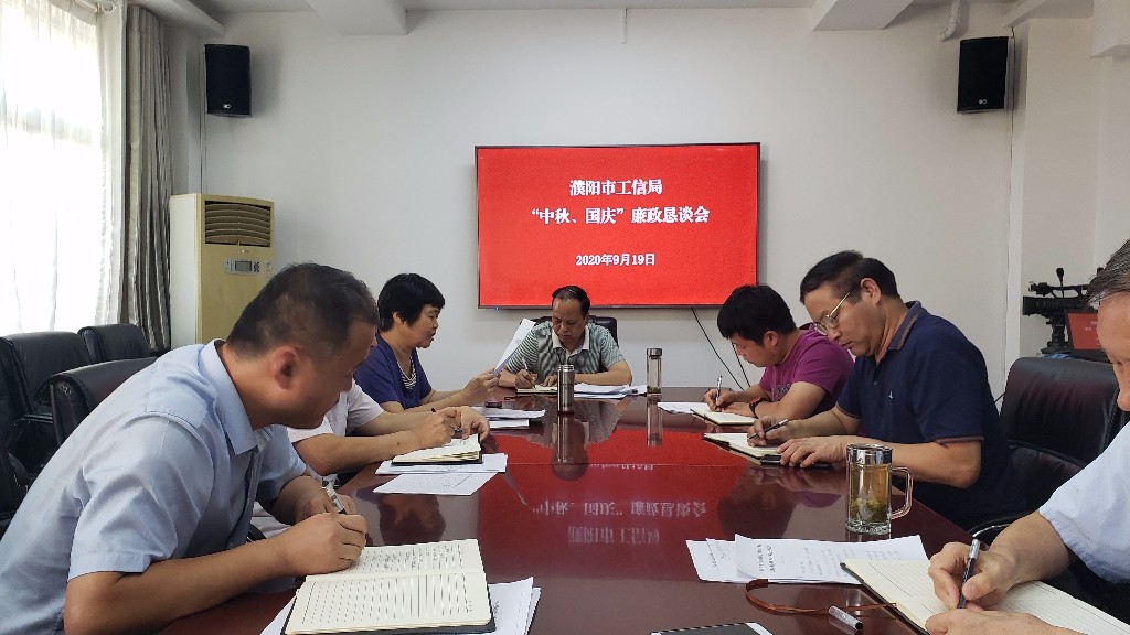 9月19日,市工信局组织召开“中秋、国庆”廉政恳谈会,会议由党组书记、局长薛炳海主持,中层以上党员干部参加。